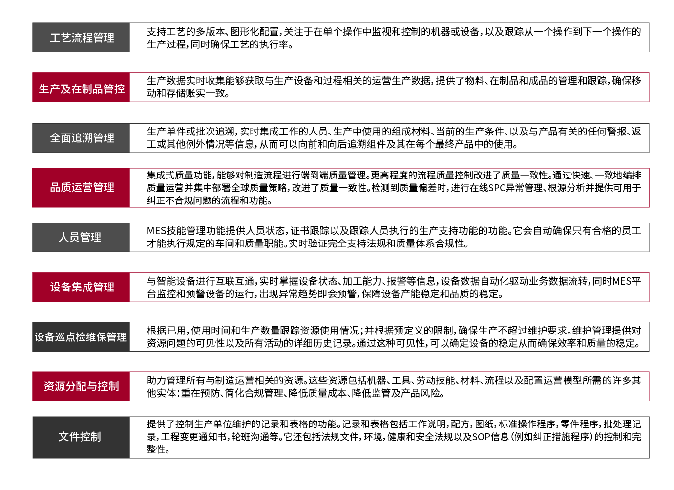(3)Opcenter Execution Medical Device and Diagnostics (Camstar Medical Device Suite医疗器械行业套件)是医疗设备和诊断行业的领先制造执行解决方案,有助于防止流程出错并且支持无纸化制造、电子设备历史记录 (eDHR) 和电子批次记录 (eBR)。新兴、中等规模和全球性企业都面临既要缩减成本又要确保合规的挑战,同时还需要始终如一地生产出高质量的产品。帮助医疗和诊断设备企业成功应对这些挑战方面拥有成熟的经验。其中纳入医疗设备制造领域的典范做法,能够更快地在企业实施。它可以帮助您加快创新、降低成本,并获得高品质产品,同时确保优秀的制造流程合规。