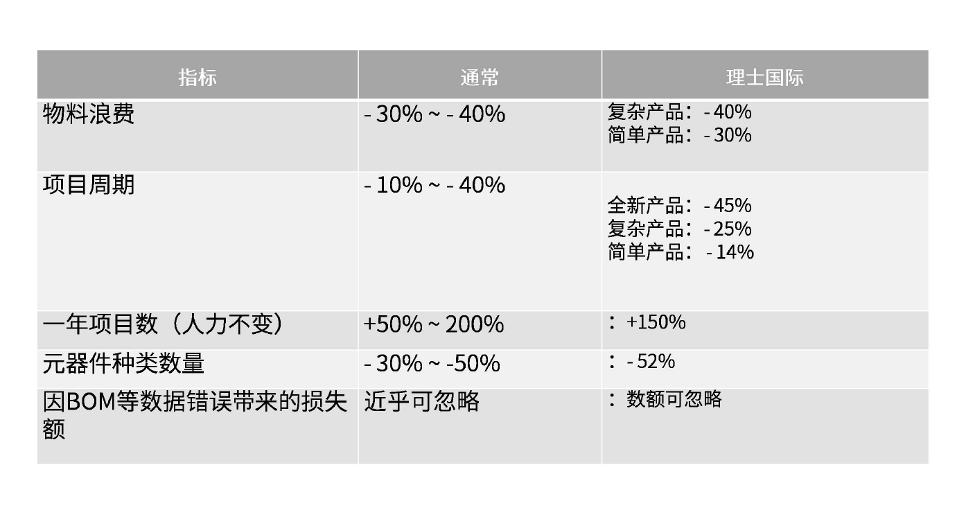 通过对产品数据管理及项目管理的PLM落地实施使以下指标能够得到改善: