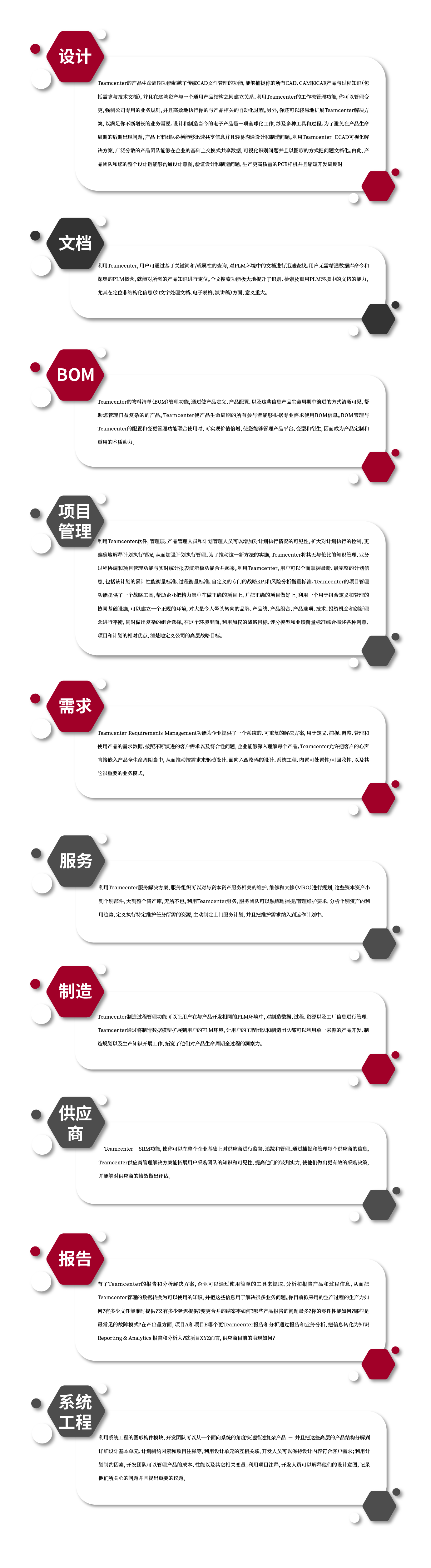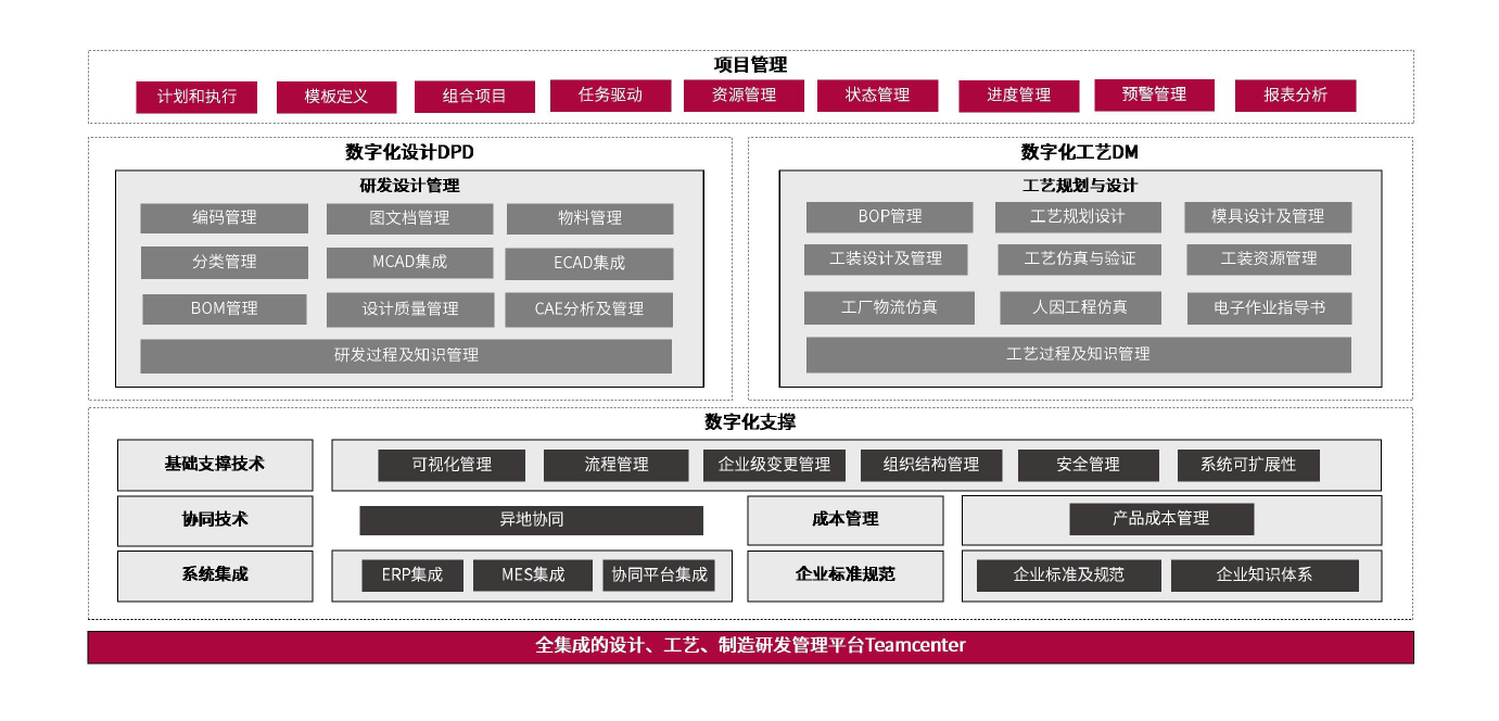 支持从产品创意和需求,工程和制造,一直到维护运行和报废的全生命周期管理